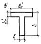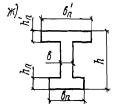 По табл. 17 находим ξR = 0,625; AR = 0,43. Так как x = 44,2 см > ξRh0 = 0,625·63 = 39,4 см, то прочность сечения проверяем из условия (18): ARRпрbh02 + Rа.сF'а(h0 - a') = 0,43·115·30·632 + 3400·3,39(63 - 3) = 65,8 тс·м > M = 60 тс·м, т.е. прочность сечения обеспечена. Тавровые и двутавровые сечения Пример 6. Дано: размеры сечения b'п = 150 см; h'п = 5 см; b = 20 см; h = 40 см; a = 4 см; mб1 = 0,85 (нагрузки малой суммарной длительности отсутствуют); бетон марки М 300 (Rпр = 115 кгс/см2); арматура класса А-III (Rа = 3400 кгс/см2); расчетный изгибающий момент M = 25 тс·м. Требуется определить площадь сечения продольной арматуры. Расчет. h0 = 40 - 4 = 36 см. Расчет ведем согласно указаниям п. 3.23 в предположении, что сжатая арматура по расчету не потребуется. Так как Rпрb'пh'п(h0 - 0,5h'п) = 115·150·5(36 - 0,5·5) = 28,9 тс·м > M = 25 тс·м, т.е. граница сжатой зоны проходит в полке и сжатой арматуры не требуется, расчет производим как для прямоугольного сечения шириной b'п (см. п. 3.23 «а»). Определяем величину A0 по формуле (22):