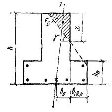 Wт - момент сопротивления сечения для крайнего растянутого волокна, определяемый с учетом неупругих деформаций растянутого бетона в предположении отсутствия продольной силы по формуле где Iб.0 - момент инерции сжатой зоны бетона относительно нулевой линии; Sб.р - статический момент растянутой зоны бетона относительно нулевой линии; h - x - расстояние от нулевой линии до растянутой грани, равное