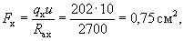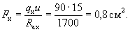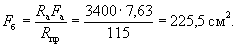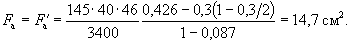 В этом случае площадь контакта анкера с бетоном из условия прочности бетона на