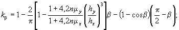 где Wт, W'т - значения Wт, определенные согласно п. 4.4, соответственно для более растянутой и менее растянутой граней сечения; r'у, rу - расстояние от центра тяжести приведенного сечения до условных ядровых точек, определенных согласно п. 4.3, наиболее удаленных соответственно от более растянутой и менее растянутой граней элемента. 4.19. Для элементов прямоугольного сечения с симметричной арматурой, испытывающих косое внецентренное сжатие, кривизны вычисляются по формуле где kβ - коэффициент, учитывающий влияние угла наклона силовой плоскости на величину деформаций кососжимаемых элементов;