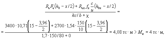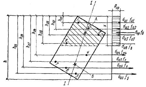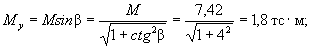 Mх = Mcosβ = Mуctgβ = 1,8·4 = 7,2 тс·м. Определяем по формуле (38) высоту сжатой зоны x по наиболее сжатой стороне сечения: