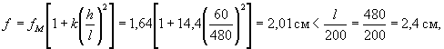 Так как l/h = 570/30 = 19 > 10, то, согласно п. 4.29, прогиб f = fM, который определяем по формуле (301); согласно табл. 31, S = 5/48.