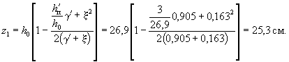 ξ = 0,163 > h'п/h0 = 3/26,9 = 0,112. Так как ξ > h'п/h0, то продолжаем расчет как для таврового сечения. Плечо внутренней пары сил z1 определяем по формуле (269):