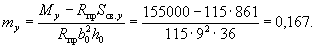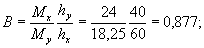 Mх = Mу ctgβ = 1,55·4 = 6,2 тс·м. Определим необходимое количество арматуры согласно п. 3.26. Принимая значения b0, h0, Sсв.х и Sсв.у из примера 9, находим значения mх и mу: