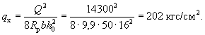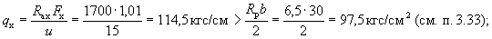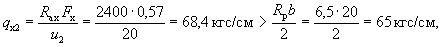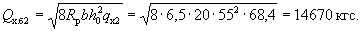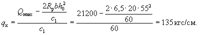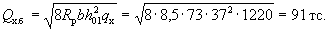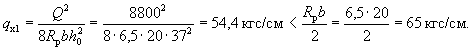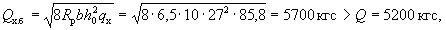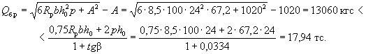 p = 7,06 - (7,06 - 0,71)0,464/(2·4,25) = 6,72 тс/м = 67,2 кгс/см. Определим значение Qб.р: A = 1,5Rрbh0tgβ = 1,5·8,5·100·24·0,0334 = 1020 кгс;
