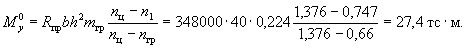Wт = (0,292 + 1,5μ1n + 0,075γ'1)bh2 = (0,292 + 1,5·0,128 + 0,075·1,63)8·302 = 4350 см3. Коэффициент m определяем по формуле (271), учитывая, что для изгибаемого элемента Mяв = M:
