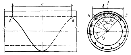 где c - см. п. 4.14; V - см. п. 4.15; б) для участков элементов, указанных в п. 4.15, имеющих трещины в растянутой зоне, по формуле