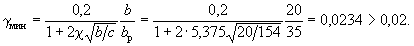 Из табл. 29 по μn = 0,03 и γ' = γ = 0 находим: λгр = 21. Так как h < 25 см, то λгр корректируем путем деления на коэффициент