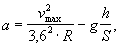 где vср - средневзвешенная квадратическая скорость, км/ч, намечаемая на десятый год эксплуатации в месте расположения кривой; R - радиус круговой кривой, м; k - коэффициент увеличения возвышения наружного рельса, учитывающий смещение центра тяжести экипажа в наружную сторону по отношению к оси кривой, принимаемый равным 1,0 при скоростях движения до 140 км/ч включительно и 1,2 - при скоростях более 140 км/ч. Возвышение наружного рельса необходимо проверять на соблюдение нормы непогашенного поперечного ускорения по формуле: