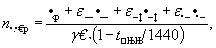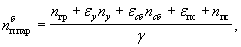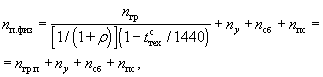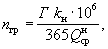 где nгр - заданное число грузовых поездов (без ускоренных и сборных) в средние сутки месяца максимальных перевозок; пу - заданное число ускоренных грузовых поездов; nсб - заданное число сборных поездов; nпс - заданное число пассажирских поездов; eу, eсб, eпс - коэффициенты съема грузовых поездов соответственно ускоренным, сборным и пассажирским поездом*; g - допустимый коэффициент использования пропускной способности для компенсации внутрисуточных колебаний размеров движения и эксплуатационных отказов в работе. Величина nгр равна: