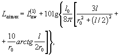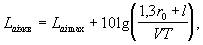 где v — расчетная скорость поезда на рассматриваемом участке, м/с; v0 — опорное значение скорости, v0= 1 м/с. 3. Мгновенный уровень шума, создаваемой отдельным движущимся поездом, Lаix, дБА, для любого положения поезда на магистрали следует определять по формуле: где r0 — расстояние от наблюдателя до магистрали, м; L0 = 1 м — опорное значение длимы; х2, х1 — координаты начала и конца поезда, м. Началом координат считается точка пересечения линии движения поезда (магистрали) и перпендикулярной линии, проведенной из точки наблюдения к магистрали. 4. Мгновенный максимальный уровень шума, создаваемого движущимся поездом при прохождении его перед наблюдателем, расположенным напротив середины поезда, Laimax (х2 = –x1 = l/2) следует определять по формуле: