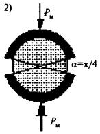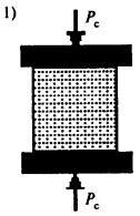 где Р - нагрузка на образец, Н; fпр - прогиб образца в середине пролета, см. За результат определения принимают округленное до целого среднеарифметическое значение испытания трех образцов. 18 Определение характеристик сдвигоустойчивостиСущность метода заключается в определении максимальных нагрузок и соответствующих предельных деформаций стандартных цилиндрических образцов при двух напряженно-деформированных состояниях (рисунок 9): при одноосном сжатии (1) и при сжатии специальным обжимным устройством по схеме Маршалла (2). Рисунок 9 - Схемы испытания