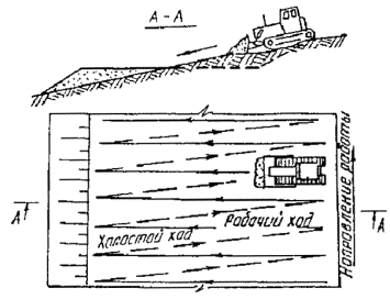 Рис. 2. Схема разработки полок на склонах поперечными проходами бульдозера.