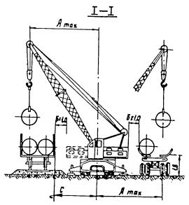 где Г - ширина полувагона; D - диаметр перевозимых труб. Значения Amax и C для разных кранов приведены в табл. I.
