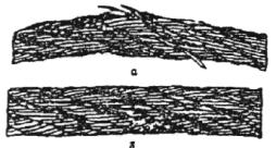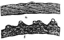 Рис. 2. Сочетание обрывов проволок с их износом: а- в канате крестовой свивки; б - в канате односторонней свивки