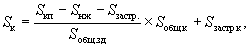 где Sнорм.к. - нормативный размер земельного участка в кондоминиуме, м2; Sк - общая площадь жилых помещений в кондоминиуме, м2 Уз.д. - удельный показатель земельной доли для зданий разной этажности (таблица приложения А). Уточнение удельных показателей земельной доли для зданий разной этажности осуществляется органами местного самоуправления исходя из территориальных градостроительных нормативов, градостроительного и правового зонирования конкретной территории с учетом градостроительной ценности и региональных особенностей территорий. 3.5 Определение размеров земельных участков для нежилых помещений (предприятия торговли, бытового обслуживания и т.п.), входящих в состав кондоминиума, осуществляется на основании градостроительных нормативов с учетом обеспечения требований по эксплуатации этих помещений (организация подъездов, подходов, разворотных площадок для транспорта, площадок для временной стоянки автомобилей и т.д.) и уточняется при разработке границ земельного участка, входящего в кондоминиум. 3.6 При определении размеров земельного участка в кондоминиуме на базе отдельного здания в составе квартала (особенно в центральных районах поселений, где сверхнормативные территории фактически отсутствуют) может также применяться расчетная формула, в основу которой положен принцип выявления нежилых территорий в границах квартала, микрорайона, не подлежащих передаче в кондоминиумы, т.е. исключения участков школ, детских дошкольных учреждений, других отдельно расположенных учреждений культурно-бытового обслуживания, территорий общего пользования микрорайонного и внемикрорайонного значения, территорий незавершенной, реконструируемой и проектируемой застройки, а также других территорий, не занятых жилой застройкой. Расчет размера земельного участка в кондоминиуме проводится по следующей формуле (2):
