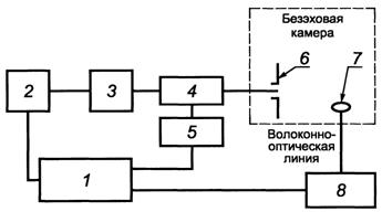 Рисунок 1 - Определение степени жесткости испытаний и формы колебаний на выходе генератора сигналов Рисунок 2 - Пример испытательной установки Рисунок 3 - Расположение оборудования при калибровке испытательного поля Рисунок 4 - Пример плоскости однородного поля размерами 1,5×1,5 м Рисунок 5 - Пример установки для испытаний напольных ТС Рисунок 6 - Пример установки для испытаний настольных ТС 1 - контроллер, например персональный компьютер; 2 - генератор сигналов; 3 - усилитель мощности; 4 - направленный ответвитель; 5 - измерительный прибор; 6 - передающая антенна; 7 - антенна (датчик) для измерения напряженности поля; 8 - измеритель напряженности поля Примечание - Направленный ответвитель 4 и измерительный прибор 5 могут быть заменены детектором подводимой мощности или монитором, установленным между усилителем 3 и антенной 6 Рисунок 7 - Измерительная установка Приложение А
