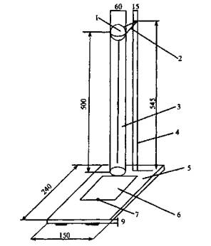 Рис. 5. Схема прибора для определения прочности приклейки зерен щебня к поверхности вяжущего по методу Виолит: 1 - шар-ударник; 2 - запорное устройство; 3 - направляющее устройство; 4 - штатив; 5 - плита; 6 - испытательная пластина; 7 - опоры 13.16.2. Подготовка к испытанию Вяжущее массой 5 г (из расчета 0,5 кг/м2) наносится тонким слоем на металлическую пластинку размером 100×100×2 мм путем осторожного расплавления на электроплитке при температуре не выше 150°С. На слой вяжущего укладывают 50 щебенок (кубовидной формы) ровными рядами равномерно по всей площади пластинки, отступая на 3-5 мм от краев. Остывшие (до комнатной температуры) пластинки со щебенками выдерживают под грузом 1 кг в течение 1 ч. 13.16.3. Проведение испытания После термостатирования в течение 1 ч при заданной температуре (температуре испытания) пластинку помещают на опоры вниз щебенками и на нее с высоты 0,5 м сбрасывают металлический шар массой 500±5 г. 13.16.4. Обработка результатов Определяют количество (%) удержавшихся щебенок в зависимости от количества ударов. Щебёнки, отлетевшие с пленкой вяжущего (то есть проявляющие адгезию к вяжущему), считаются выдержавшими испытание. 14. ТЕХНИКА БЕЗОПАСНОСТИ14.1. При приготовлении ПБВ, полимерасфальтобетонных и асфальтобетонных смесей на их основе и при устройстве полимерасфальтобетонных и асфальтобетонных покрытий с их применением следует руководствоваться «Правилами по охране труда в дорожном хозяйстве» (М., Стройиздат, 1989 г.); «Правилами охраны труда при строительстве, ремонте и содержании автомобильных дорог» (Москва, 1992 г.). 14.2 ПБВ являются малоопасными веществами и по степени воздействия на организм человека относятся (как и битумы) к четвертому классу опасности по ГОСТ 12.1.007-76. Предельно допустимая концентрация ПБВ в воздухе рабочей зоны 300 мг/м3; блоксополимера бутадиена и стирола типа СБС, а именно полимера этенил бензола с бутадиеном 1,3 составляет 10 мг/м3 (4-й класс опасности). 14.3. Все работы, связанные с битумами, ПБВ, пластификаторами, растворами полимеров и ПАВ, следует согласовывать с органами Госсаннадзора и Госпожнадзора. 14.4. При работе с вязкими ПБВ следует руководствоваться правилами техники безопасности, разработанными для вязких битумов и ПАВ. 14.5. Правила техники безопасности при работах с адгезионными добавками «АМДОР-9», «БП-ЗМ», «ДОРОС-АП» изложены в «Руководстве по применению поверхностно-активных веществ при устройстве асфальтобетонных покрытий (взамен ВСН 59-68)» 2003 г., утвержденном распоряжением Минтранса России от 18.04.2003 г. № ОС-358. При работе с добавкой «Т-1» необходимо дополнительно соблюдать правила техники безопасности, учитывающие ее пожароопасность (температуры вспышки, воспламенения и самовоспламенения составляют соответственно 224, 303 и 345°С). Добавка «Т-1» относится к малолетучим и невзрывоопасным веществам. 14.6. Дорожные битумы, ПБВ, сырье для производства нефтяных вязких дорожных битумов (гудрон), индустриальное масло и ПАВ являются горючими веществами по ГОСТ 12.1.044-89 с температурой вспышки 220-240°С, 220-230°С, 190-200°С, 200-225°С и 100-220°С соответственно. Опасные в пожарном отношении места хранения вяжущих, ПАВ, пластификаторов и растворов полимеров, склады горючесмазочных материалов, асфальтобетонные машины, битумоплавильные установки, битумохранилища должны быть оснащены щитами с противопожарным оборудованием, ящиками с 