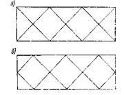 7.12. Помимо решетки с раскосами, заменяющими поперечные балки я имеющими высоту поддона, допускается дополнять раскосами несущий каркас из продольных и поперечных балок. Раскосы в такой решетке выполняются из прокатных уголков (ГОСТ 8509-72), привариваемых к балкам в уровне их нижних полок. 8. КЛАССИФИКАЦИЯ СХЕМ РАСКОСНОЙ РЕШЕТКИ8.1. Поддоны с раскосной решеткой подразделяются на конструкции, в которых раскосы располагаются на всей площади (полная раскосная решетка), на части площади и с раскосами, дополняющими каркас из продольных и поперечных балок; два последних типа конструкций относятся к комбинированным. 8.2. Раскосная решетка является одинарной, если по ширине между продольными балками имеется одно пересечение раскосов (рис.5) или двойной, когда имеется два пересечения раскосов (рис.6).