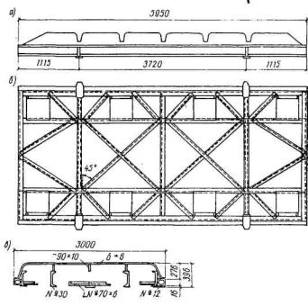 на части площади 8.6. К поддонам с комбинированной решеткой относятся также конструкции, в которых раскосы из уголков дополняют каркас из продольных и поперечных балок (рис.12).