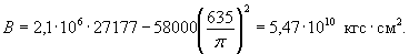 Момент инерции на изгиб определяется по формуле (2) J = 4×1090 + 2×1090×1,414 + 82,8×3,982 + 58,54×3,982 + 104(9,4-3,98)2 = 12850 см4. Момент инерции на кручение определяется по формуле (6) Jк = 3,54×0,29×2×20,7×182 = 13770 см4. 3. Расчетные жесткости поддона Расчетная жесткость на изгиб определяется по формуле (6.4)* Здесь и далее звездочками обозначены формулы и табличные значения из "Руководства по расчету и проектированию стальных форм" (М.,1970). В = 2,1×106×12850 = 2,7×1010 кгс×см2. Расчетная жесткость на кручение (см. п.4.1 настоящих Рекомендаций) равна с = 0,8×106×13770 = 1,1×1010 кгс×см2. 4. Определение прогиба поддона Прогиб подсчитывается по формуле (6.1)* при