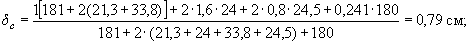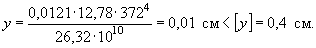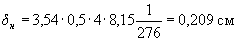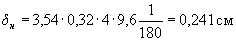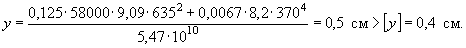 r = 1,0725 (по табл.4 при x = 0,35); W = 0,2344×(1 + 0,605×0,0416)×1,0725 = 0,258. Прогиб равен