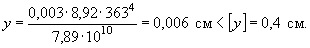 r = 1,075 (по табл.4 при x = 0,358); W = 0,5×(1+0,0395×0,273)×1,075 = 0,54. Прогиб равен