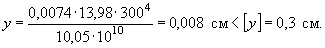 r = 1,056 (по табл.4 при x = 0,3); W = 0,31×(1 + 0,436×0,756)×1,056 = 0,338. Прогиб равен