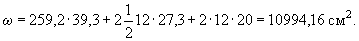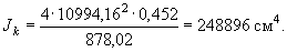 Расстояние оси напряженной арматуры до центра тяжести сечения, когда ось расположена выше обшивки на 2,7 см, составляет е = 11 - 4,61 + 2,7 = 9,09 см. Момент инерции на изгиб определяется по формуле (2)