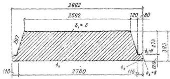 Рис.22. Поперечное сечение поддела для криволинейного изделия 11.7. В поддонах для рельефных изделий, характеризуемых особым разнообразием очертания верхней обшивки, допускается любые типы комбинированной решетки, в том числе сочетающие с продольными и поперечными балками раскосы той же высоты, раскосы из прокатных уголков и нижнюю обшивку (рис.23).