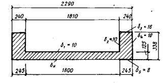 Пример 4. Поддон (см. рис.27 в прил.4 настоящих Рекомендаций) относится к форме, предназначенной для изготовления плитных изделий. Масса формы 3800 кг, масса изделий 3200 кг. 1. Нагрузки Масса формы на единицу длины
