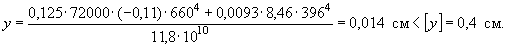 r = 1,083 (по табл.4 при x = 0,4); W = 0,381×(1 + 0,655×0,0128)×1,089 = 0,418. Прогиб равен