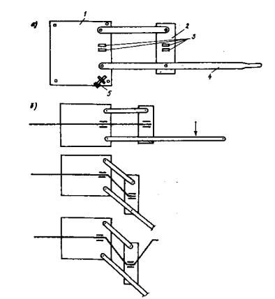 а - общая схема приспособления; б - последовательность гнутья заготовки