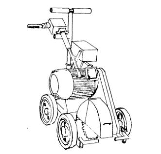 - производительность -150-200 м3/час однослойной стяжки; - давление в шланге - до 1 МПа; - рабочее давление воздуха - до 0,6 МПа; - расход сжатого воздуха -0,3 м/ мин.; - напряжение электросети - 220 В; - частота электротока - 50 Гц; - длина-350 мм; - ширина -140 мм; - высота-230 мм; - масса-до 4,9 кг. 3. ПОДГОТОВКА ПОВЕРХНОСТИ ОСНОВАНИЯ3.1. Основанием под новую мастичную кровлю из мастик Абрис®Ру и БСКМ является подготовленная поверхность бетонных кровельных плит (при сборных конструкциях) или поверхность цементно-песчаной стяжки (при построечном изготовлении), а также асфальтобетонной стяжки. Поверхности эти должны быть гладкими, без пыли и масляных пятен. 3.2. При выполнении ремонта кровли из рубероида необходимо рулонный ковер удалить полностью, а стяжку отремонтировать или выполнить заново. Старое мастичное покрытие толщиной до 3 мм, как правило, счищать не следует, выравнивая лишь бугры и наплывы на поверхности. 3.3. Для снятия старого кровельного покрытия целесообразно использовать специальные механизмы для резки кровельного "ковра". Такие машины разработаны ЛНИИ АКХ (рис. 3.1). Скорость резки "ковра" толщиной до 50 мм достигает 10,5 м/мин при мощности электродвигателя 4 кВт. Габариты машины 1000×485×880 мм при массе 92 кг (см. Приложение 6). Усовершенствованный нарезчик швов Э-347 рекомендуется при толщине слоя до 75 мм при ширине полосы 300 мм (скорость резания 10 м/мин, габариты 1800×800х 1200 мм при массе 90 кг, мощность электродвигателя 4 кВт). Эффективный и дешевый нарезчик швов упрощенной конструкции разработан и применяется в ООО ПКФ "Сфера" (см. Приложение 6). 3.4. В связи с обязательной необходимостью снятия старого кровельного ковра при выполнении капитального ремонта возникает вопрос рациональной утилизации рубероидно-битуминозной массы. Корпорацией "Авистен" разработана технология вторичного использования рубероида (ВИР). С участка (захватки) ремонтируемой мягкой кровли снимают рубероидных ковер и незамедлительно очищенную поверхность пропитывают праймером (грунтовкой), изготовленным на основе той мастики, которой будут покрывать кровлю. Снятое старое покрытие измельчают, используя передвижное механизированное устройство, и загружают в приемную камеру другого мобильного агрегата, где эта масса разогревается и перемешивается (электробитумоварочный аппарат ЭНВ-04). Контроль процесса разогрева автоматизирован (патент РФ №2076166). Жидкую консистенцию битуминозной массы выгружают на огрунтованную захватку толщиной слоя около 20 мм и после остывания прикатывают ручным катком. Технология "ВИР-пласт" позволяет из бросового материала изготавливать битуминозную (асфальтовую) стяжку под новое покрытие. Технология "ВИР-пласт" эффективна в зимнее время, экономична и решает проблему утилизации старого рубероида, 3.5. Поверхность, служащая основанием под кровельное покрытие из Абрис®Ру и БСКМ должна быть ровной, с плавными переходами (выкружками) в местах сопряжений с выступающими над крышей конструкциями (элементами). Для определения правильности выполнения уклона в стяжке-разуклонке следует в трех местах приложить прямую рейку длиной 3 м как по направлению уклона (просвет под рейкой не более 1 см), так и поперек (просвет не более 5 см). При обнаружении неровностей, превышающих указанные требования, следует отремонтировать стяжку, счистив наплывы (бугры), или наоборот - заполн