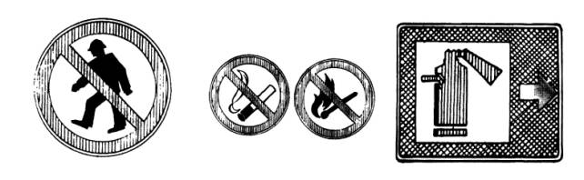 Рис. 7.2. Плакат с надписью: "Курить и разводить огонь запрещается" (на белом фоне красная штриховка и пламя) |