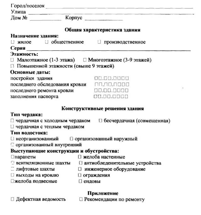 При отсутствии перечисленных выше документов необходимо составить схематический план кровли с указанием расположенных на ней выступающих крышных конструкций, оборудования и ограждений.