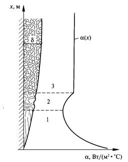 коэффициента теплоотдачи при свободном движении вдоль вертикальной стенки: Около поверхности температура и скорость воздуха изменяются по направлению его движения, причем температура меняется в пределах теплового пограничного слоя, а скорость снижается в пределах гидродинамического пограничного слоя. В общем случае размеры этих слоев не совпадают. Толщина ламинарного пограничного слоя растет по высоте, в переходной области происходит резкое увеличение толщины пограничного слоя, а в турбулентной области она остается неизменной. Интенсивность естественного конвективного потока для любых форм поверхностей и сред в обобщенном виде определяется произведением критериев Грасгофа