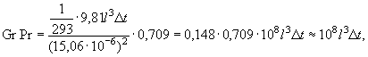 переходе от ламинарного к турбулентному режиму при произведении GrPr = 2·107,