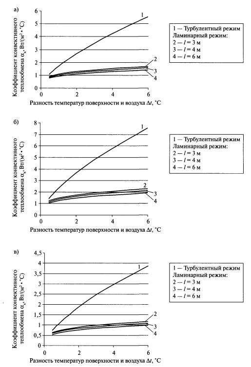 Как видно из табл. 11, не совсем верно утверждение, что в помещении естественный конвективный теплообмен происходит преимущественно при турбулентном режиме течения воздуха у поверхности ограждения*. * Вывод о преимущественно
