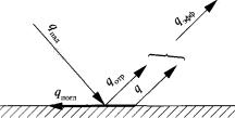 где Со - коэффициент излучения абсолютно черного тела; Со = 5,67 Вт/(м2·К4); Т - температура излучающей поверхности по шкале абсолютных температур, К. Это означает, что интенсивность излучения резко возрастает с повышением температуры поверхности тела. Серые тела излучают меньше энергии, чем абсолютно черные. Их коэффициент излучения С, Вт/( м2·К4), может быть представлен в виде С = Соe, (3.25) где e - степень черноты серого тела или относительный коэффициент излучения поверхности. Для серой поверхности e < 1. Поверхности в помещении имеют высокие коэффициенты излучения - больше чем 0,8 (исключение составляют побеленные поверхности, у которых e = 0,62). По закону Кирхгофа у серых тел коэффициент излучения равен коэффициенту поглощения. Так как поверхности излучают собственную и отраженную теплоту, эту сумму называют эффективным излучением поверхности (рис. 10). Из-за того что коэффициенты поглощения в помещении близки к 1, отраженная от них часть лучистой энергии, упавшей от других поверхностей, близка к 0. Поэтому отраженной частью излучаемой энергии пренебрегают и эффективное излучение считают равным собственному.