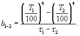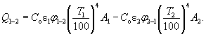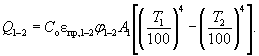 Так как Т1 > Т2, к разности излучений с поверхностей 1 и 2 применимо понятие приведенного коэффициента излучения eпр,1-2. Кроме того, по закону взаимности лучистых потоков j1-2А1 = j2-1А2. Тогда формулу (3.44) можно записать более компактно: Разность четвертых степеней температуры в практических расчетах неудобна. Да и сами инженерные расчеты принято выполнять, используя не абсолютную шкалу температур, а шкалу Цельсия. Поэтому введем коэффициент, линеаризующий формулу (3.45), так называемый температурный множитель b1-2: