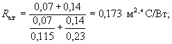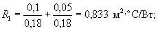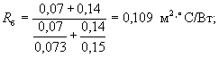 Rт - термическое сопротивление материального слоя, м2×°С/Вт;