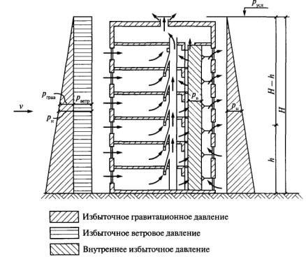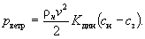 Аэродинамические коэффициенты показывают, какую долю от динамического давления ветра составляет формируемое им статическое давление на каком-либо фасаде здания. В соответствии со СНиП 2.01.07-85* [33] для большинства зданий величина аэродинамического коэффициента на наветренной стороне сн = 0,8, а на подветренной - сз = -0,6. Так как за начало отсчета давления принято избыточное давление на подветренном фасаде, то ветровое давление на наветренной стороне рветр, Па: