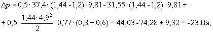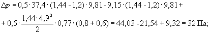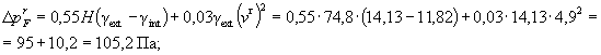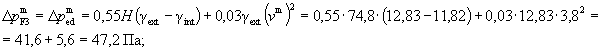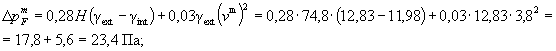 где Н - высота здания от земли до верха вытяжной шахты, м; Н = 17·3,6 + 2·4,05 + 0,9 + 4,6 = 74,8 м, где 0,9 - высота пола первого этажа над землей, м; 4,6 - высота вытяжной шахты над полом чердака; gext - удельный вес наружного воздуха, Н/м3: • в расчетных условиях • в среднесезонных условиях gint - удельный вес внутреннего воздуха, Н/м3: • для окон при температуре внутреннего воздуха 20 °С
