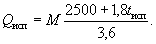 где vв - скорость движения воздуха над поверхностью испарения, м/с; принимается равной подвижности воздуха в помещении; рпов - парциальное давление насыщения водяным паром при температуре поверхности испарения жидкости tисп, кПа; рокр - парциальное давление в окружающем воздухе, кПа; А - площадь поверхности испарения, м2; В - барометрическое давление, кПа. При этом расход теплоты Qисп, Вт, равен скрытой теплоте, идущей на испарение влаги: