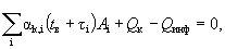 При этом площадь мебели принимается равной половине суммы площадей всех ограждений. Расчет предполагает, что воздушная система отопления всю теплоту привносит в помещение конвективным путем, когда доля конвективной составляющей rк = 1, лучистой rл = 0; в конвекторной системе rк = 0,9, rл = 0,1; в радиаторной rк = 0,7, rл = 0,3. В панельной системе считается, что rк = 0 и rл = 0, т.к. панели привносят теплоту в процессе лучисто-конвективного теплообмена между рассматриваемыми поверхностями помещения, в то время как радиаторы и конвекторы считаются дополнительными внутренними источниками, и их поверхности в данной задаче не учитываются. При всех системах отопления тепловой режим помещения описан одной и той же системой уравнений, состоящей из теплового баланса внутренних поверхностей и воздуха помещения (по однозонной модели без учета возможного отличия температуры воздуха в отдельных частях помещения от средней величины). В тепловом балансе каждой поверхности, обращенной в помещение, учитывается лучистый теплообмен ограждений друг с другом и конвективный каждого из них с воздухом помещения. Также учитывается падающий лучистый поток от внутренних источников (например, от приборов отопления), а также теплообмен с наружной средой и другими помещениями, имеющими температуру, отличающуюся от поддерживаемой в рассматриваемом пространстве. Теплообмен с наружной средой и другими помещениями определяется с помощью неполного (без учета сопротивления теплообмену на внутренней поверхности) коэффициента теплопередачи k' ( Тепловой баланс внутренней поверхности каждого ограждения имеет вид