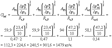 Разные конструкции наружных стен, потолков, полов учитываются самостоятельными слагаемыми. Если здание имеет стены, потолки или полы, разделяющие помещения с расчетными температурами внутреннего воздуха, отличающимися на 6 °С и более, то эти ограждения следует учитывать в формуле (10.1). 10.2.2. Приведенный инфильтрационный (условный) коэффициент теплопередачи здания и средняя кратность воздухообмена за отопительный периодПриведенный условный инфильтрационный коэффициент теплопередачи здания служит для оценки расхода теплоты, идущей на нагревание инфильтрационного и вентиляционного воздуха. В соответствии со СНиП 23-02-2003 [1] вентиляционный воздухообмен зданий определяется по расчетной площади А1, м2. В жилых зданиях А1 - это суммарная площадь жилых помещений, в общественных и административных зданиях - сумма площадей всех помещений, за исключением коридоров (если они не служат залами ожидания), тамбуров, переходов, лестничных клеток, лифтовых шахт, внутренних открытых лестниц и пандусов, а также помещений для инженерного оборудования и сетей. Вентиляционный воздухообмен жилых зданий принимается: • для зданий с предоставлением социальной нормы общей площади на человека не более 20 м2 - 3 м3/ч на 1 м2 жилой площади, т.е. 3А1; • для других жилых зданий 0,35V (здесь V - объем квартиры, м3), но не менее 30 м3/ч на одного жителя. Для общественных зданий принимаются не проектные вентиляционные расходы, а некоторые условные Lv, м3/ч, вычисляемые исходя из расчетной площади А1. • для административных, а также зданий сервисного обслуживания - 4А1; • для образовательных и учреждений здравоохранения - 5А1; • для спортивных, зрелищных и детских дошкольных учреждений - 6А1. Инфильтрационный расход воздуха определяется: • для жилых зданий как расход воздуха, поступающего вследствие инфильтрации в лестничные клетки здания; • для общественных зданий как расход воздуха, поступающего через неплотности всех светопрозрачных конструкций и входных дверей в здание. Расход инфильтрационного воздуха на лестничную клетку жилого дома Ginf, кг/ч, через неплотности входных дверей и окон, витражей, балконных дверей-переходов за счет разности давлений воздуха на наружной и внутренней поверхности ограждения определяется с учетом сопротивления воздухопроницанию этих ограждений по формуле где АF, Аed - суммарная площадь соответственно окон и витражей, балконных дверей и всех входных дверей в здание, м2; DpF, Dped - разность давлений наружного и внутреннего воздуха соответственно для окон и балконных дверей лестничной клетки и лифтовых холлов (по формуле (6.10) с заменой множителя 0,55 на 0,28) и для входных дверей (по формуле (6.10)), Па; Ra,F, Ra,ed - сопротивление воздухопроницанию (при Dp0 = 10 Па) соответственно окон, витражей и балконных дверей лестничной клетки и лифтовых холлов и всех дверей в здание, м2·ч/кг; определяется по п. 6.4. Если сопротивление воздухопроницанию окна и/или балконной двери в лифтовым холле отличается от соответствующего показателя на лестничной клетки, то в формулу (10.2) следует ввести два самостоятельных слагаемых с учетом площади каждой конструкции (например, в лестничном холле балконные двери с тамбуром, а на лестничной клетке - без него). Расход инфильтрационного воздуха общественного здания определяется по формуле (10.2) с учетом сопротивления воздухопроницанию окон 