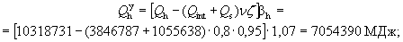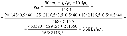 Qint - общие тепловыделения от внутренних источников в здании за отопительный период, МДж или кВт×ч; Qs - теплопоступления в здание от солнечной радиации за отопительный период через окна и фонари, МДж или кВт×ч;