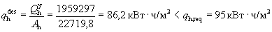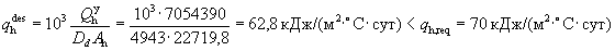 где v принимается равным v = 0,8 в соответствии со СНиП 23-02-2003 [1]; z принимается равным z = 0,95 для двухтрубной системы отопления с термостатами и с центральным автоматическим регулированием на вводе; bh принимается равным bh = 1,07 для зданий с отапливаемым подвалом. Расчетный удельный расход тепловой энергии на отопление здания с учетом нагрева вентиляционной нормы воздуха за отопительный период на 1 м2 площади квартир и полезной площади офисов определяется по формулам (10.16) и (10.18):