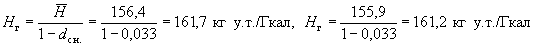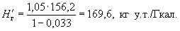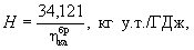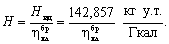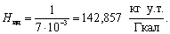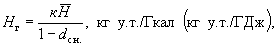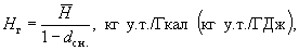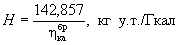 или где _________________ * Примечание: 1 кг условного топлива соответствует 7000 ккал, или 7·10-3 Гкал. Следовательно идеальный (при КПД = 1,0) удельный расход условного топлива на выработку 1 Гкал теплоты равен: